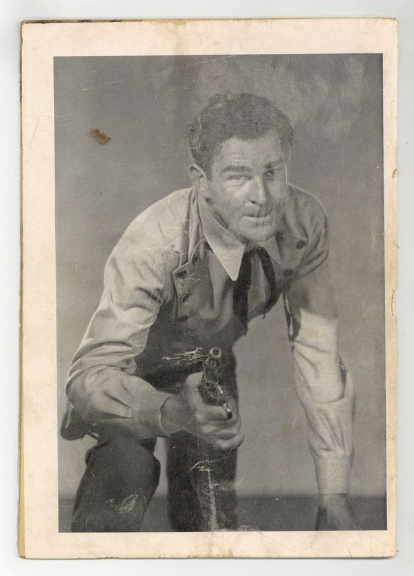 $19.00This does not contain normal comic book stories, but stories with photo "panels" taken from films, and captions underneath each photo. The films: "Broken Arrow" (starring James Stewart), "Beyond the Purple Hills" (starring Gene Autry and Pat Buttram, who is best known at Mr. Haney on "Green Acres"), "Copper Canyon" (starring Ray Milland and Hedy Lamarr), "The Showdown" (starring William Elliot, Walter Brennan, and Marie Windsor), "The Gunfighter" (starring Gregory Peck and Helen Westcott), "Trigger Jr." (starring Roy Rogers and Dale Evans), and "Hills of Oklahoma" (starring Rex Allen). Photo cover with Rogers, Autry, Peck, Stewart, and Elliott. Cover price $0.10.