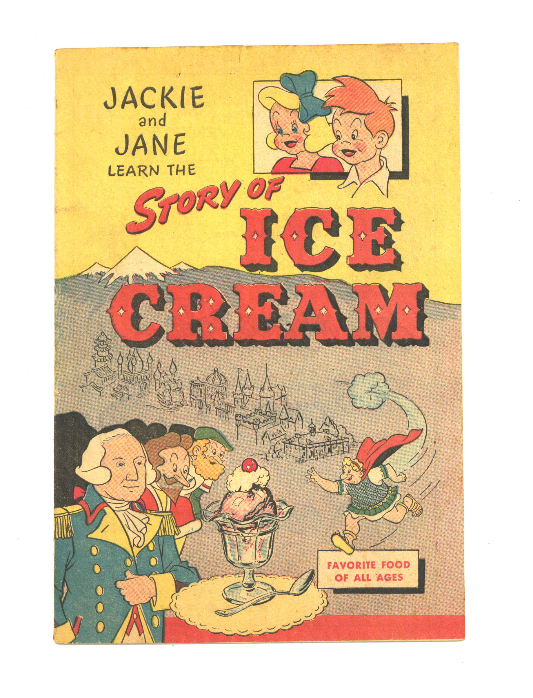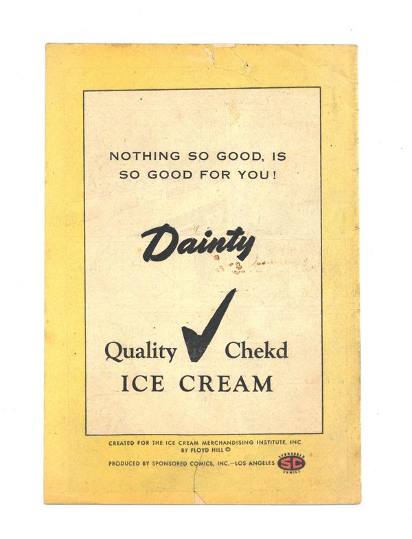 Published 1950 by Sponsored Comics Inc..$90.00Jackie and Jane Learn the Story of Ice Cream (undated, likely late 1940's to early 1950's. Full-color, newsprint promotional comic. Published by Sponsored Comics Inc.