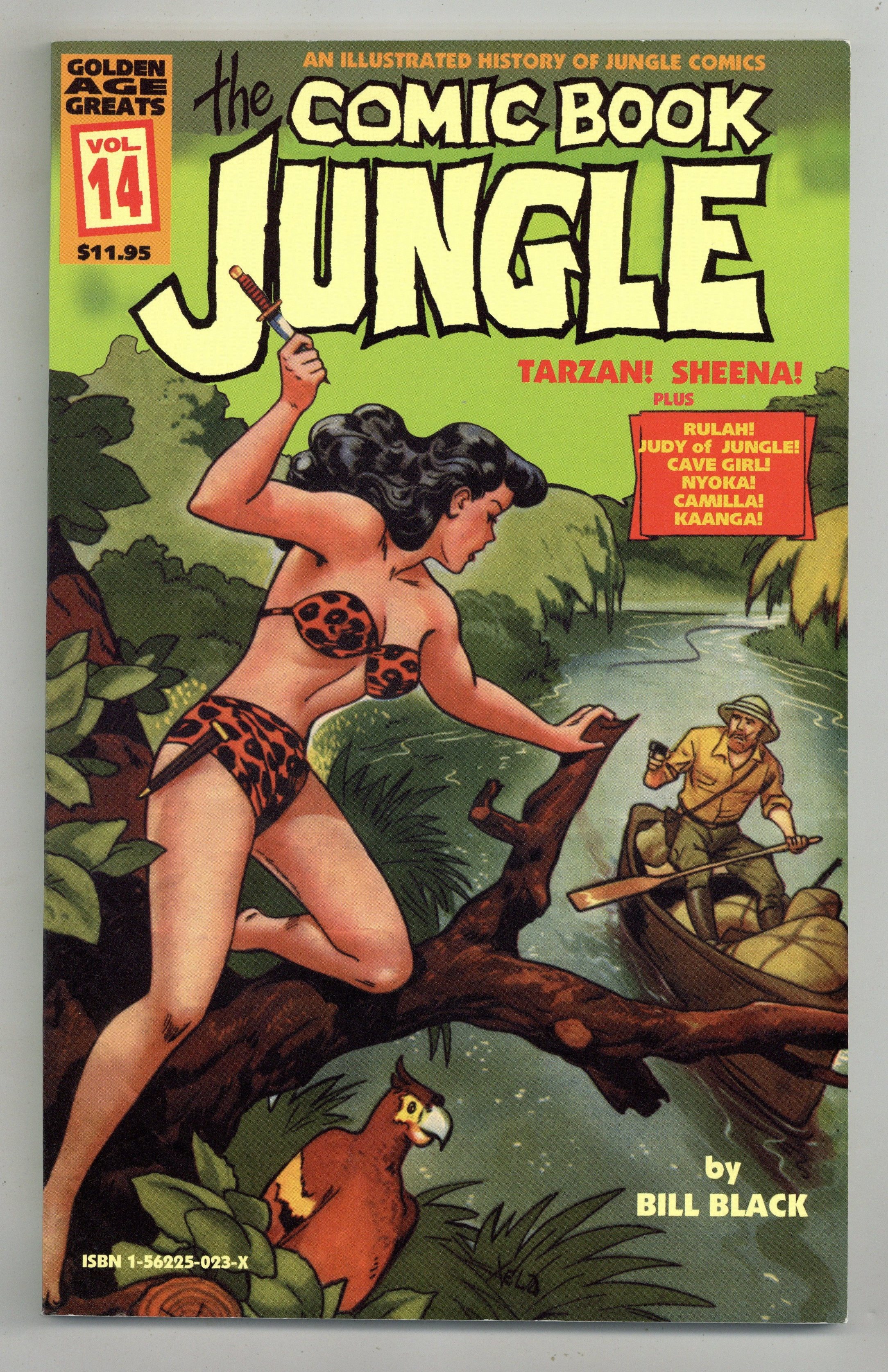 All reprints. Kaanga (art by Maurice Whitman, from Jungle Comics); Sheena in "The Conjure Man's Kraal" (pencils by Alex Blum, inks by Robert H. Webb, from Jumbo Comics) and "Pool of Peril"; Camilla (art by Ralph Mayo, from Jungle Comics); Tabu (artist unknown, from Jungle Comics); Judy of the Jungle in "The Deadly Quest" (art by Frank Frazetta, from Exciting Comics 59); Tiger Girl (pencils by Baker, inks by Webb, from Fight Comics); Rulah, Jungle Goddess (art by Edmond Goode, from All Top Comics); Kyoke in "Jungle Ambush" (art by Whitman, from Nyoka 20); Thun'da in "The Treasure of Loengula!" (art by Bob Powell, from Thun'da); and Cave Girl in "TheApeGod of Kor" (art by Powell, from Thun'da 2). Text commentary by Bill Black. Comic-sized, color cover with black and white interior. Cover price $11.95.