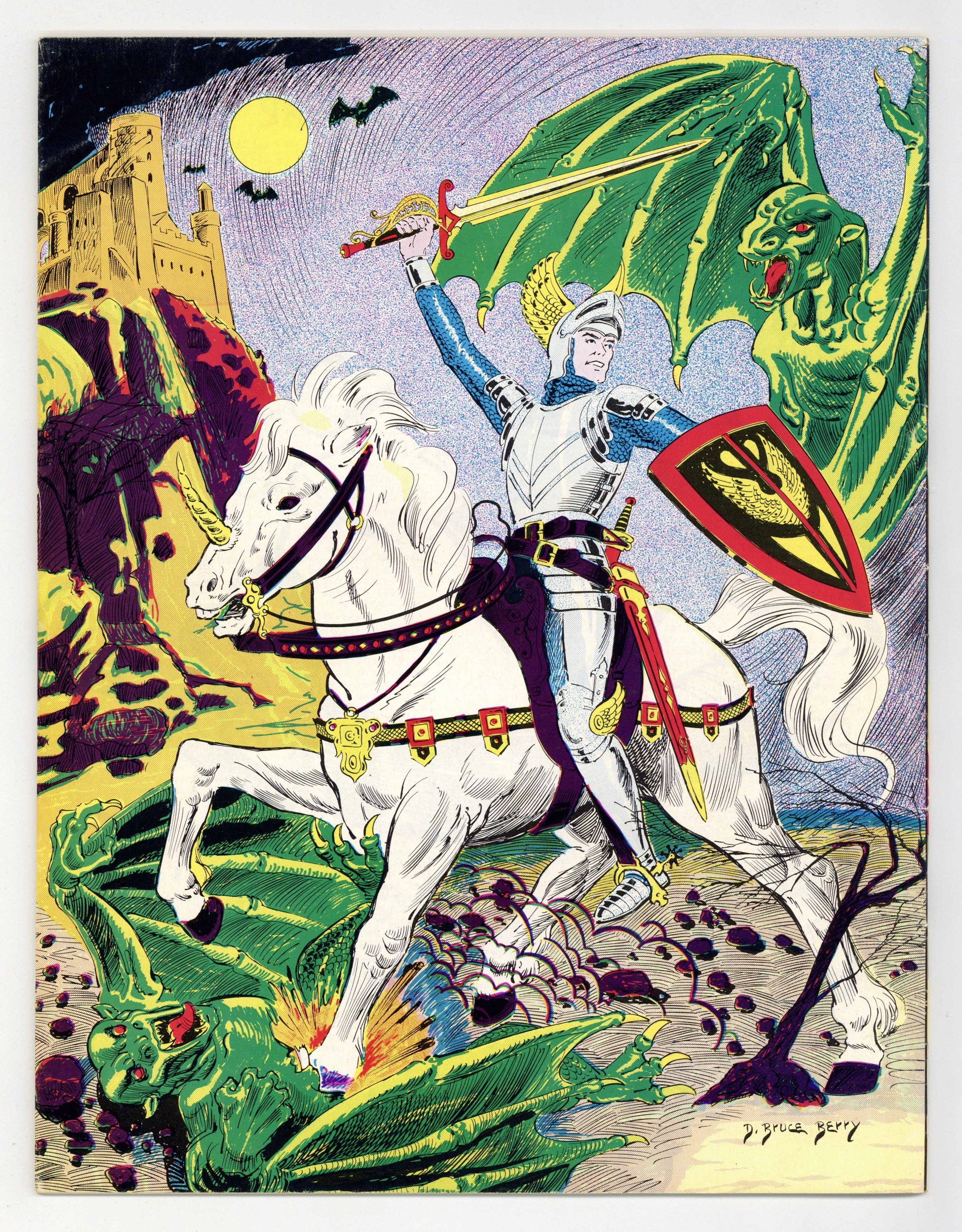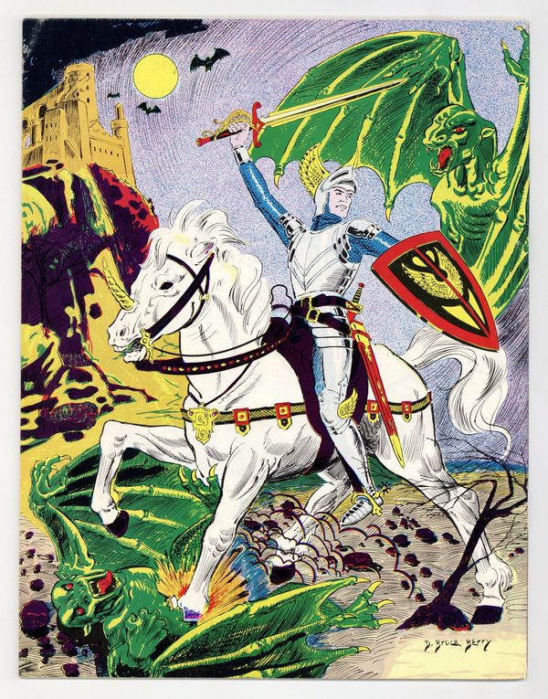 Star-Studded Comics 9 - Summer 1966 Format: Photo offset printing Wrap-around binding with staples in center. Original price was 50 cents Color cover by Buddy Saunders features Doctor Weird. Back cover by D. Bruce Berry for Vale Proditor! "Let's Talk It Over!" notes print run of this issue was 500 copies. "From Our Readers" features letters from Dennis Richard, John Melvin, Landon Chesney, John Wright, George R.R. Martin, Dave Bibby, and William C. Lee. Full page ad for audio tapes of a Captain Marvel serial, the Superman Broadway play, and the Mad Magazine Broadway play. Stories:Dr. Weird in "The Curse of Skullwing!" Comic story with script by Larry Herndon and art by Alan Weiss Powerman versus "The Transmuter" Comic story with script by Dave Bibby and art by Bill Dubay Vale Proditor! Text story by Howard Waldrop and illustrations by Buddy Saunders. Today Waldrop is a noted science fiction writer. This was possibly his first published story. Xal-Kor the Human Cat in "A Friend in Need!" Comic story with script and art by Richard "Grass" Green Cover price $0.50.