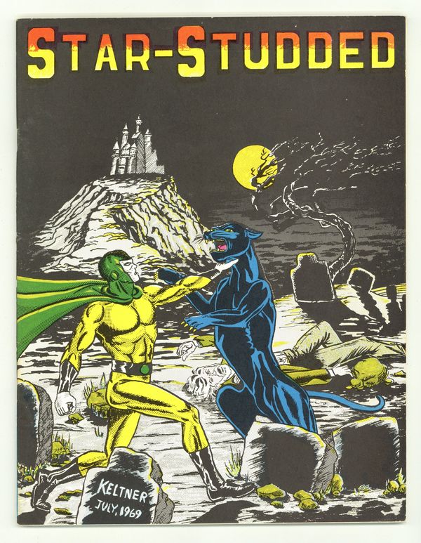 Published Nov 1969 by Texas Trio.$30.00Star Studded 16 - November 1969 This is the first issue titled just "Star Studded" - no "Comics" in the title. Format: Offset/Lithograph process Wrap-around binding with staples in center. Original price was 75 cents Color front cover by Howard Keltner features Dr. Weird and back cover is by Jim Sullivan "Let's Talk It Over!" column announces that Star-Studded Comics has a new publisher, Joe Bob Williams. Says that the Texas Trio are still the editors but Williams will handle all of the "paper work." Letters from Peter Jaksa, Don Ensign, Charles Schreck, Richard "Grass" Green, Ronn Foss, Jon Wilmunen, and Richard Kyle. Issue also features John Ryan's "Bidgee" column which tells of comic related news from Australia. This column also appeared in issues 11 and 13. In this issue, "Bidgee" tells about artist Stanley Pitt and reprints three pages of his "Silver Star" strip. Issue has two pages of photos from the Southwestern Con 1969, a comic convention held in Texas, and a four page portfolio with artwork by Keith Fukumitsu, Dave Cockrum, Gary Kato, and Mike Chadwell. Stories:"Doomsday" Comic story with script by Larry Herndon and art by Jim Starlin "Hero Material" Comic story with script and art by Dennis Fujitake "Planet of Peril" Comic story with script and art by Jim Sullivan The Defender in "The Fury and the Vengence!" (Part Two of a Two Part Story) Comic story with script by Larry Herndon and art by Mickey Schwaberow and Stephen Stanley Dr. Weird in "The Castle on Demon Mountain!" Comic story with script by Larry Herndon and art by Rudy Franke Cover price $0.75.