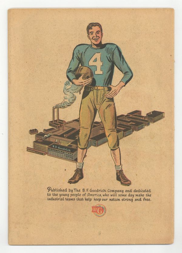 Published 1950 by BF Goodrich.$5.50Johnson Makes the Team (1950) was published by the B. F. Goodrich Co. not long after World War II ended. It tells how rubber has played a key role in American progress both in times of war and peace. Full color, 32-pages, 7-in. x 10-in., all newsprint, no cover price, no publication date or copyright date. Publication date of 1950 is an estimate based on clothing styles and other clues in the artwork.