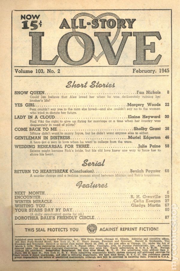 All-Story Love (1929-1955 Popular Publication) Pulp comic books 1955 or before