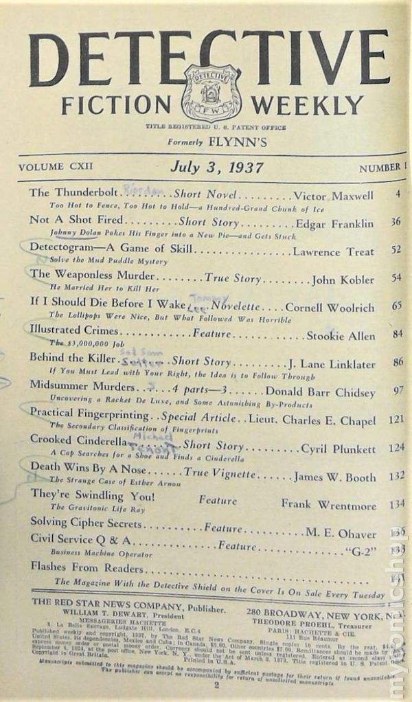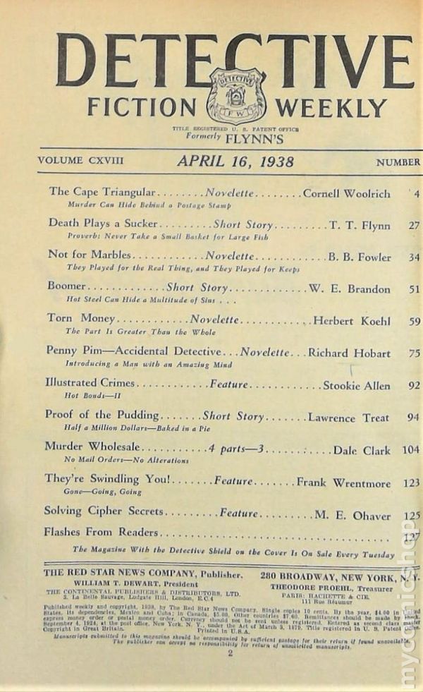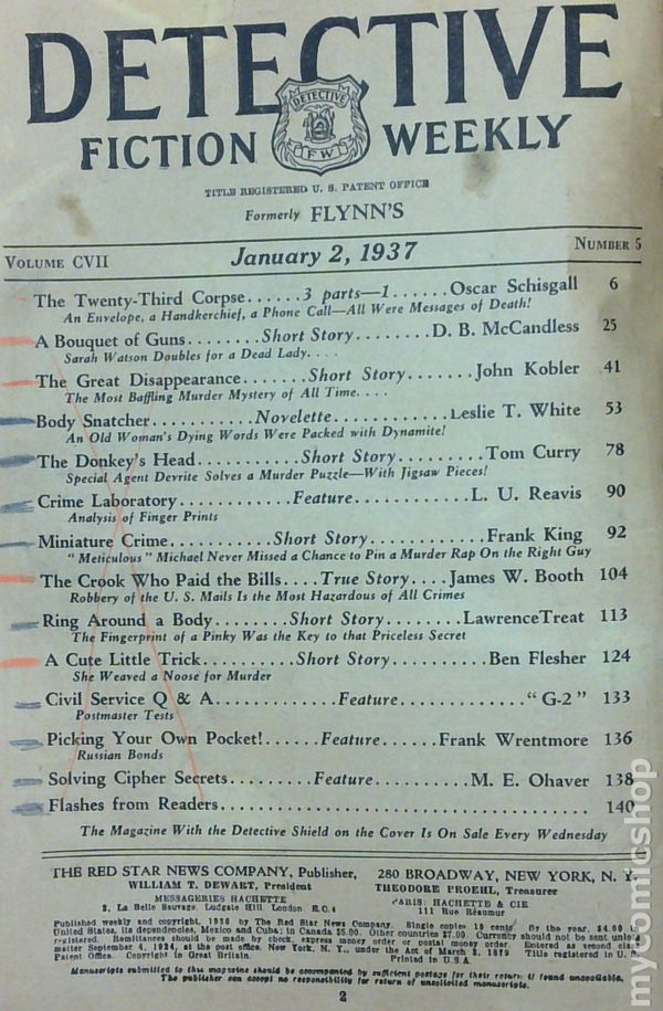 Detective Fiction Weekly (1928-1942 Red Star News) Pulp comic books 1955 or before