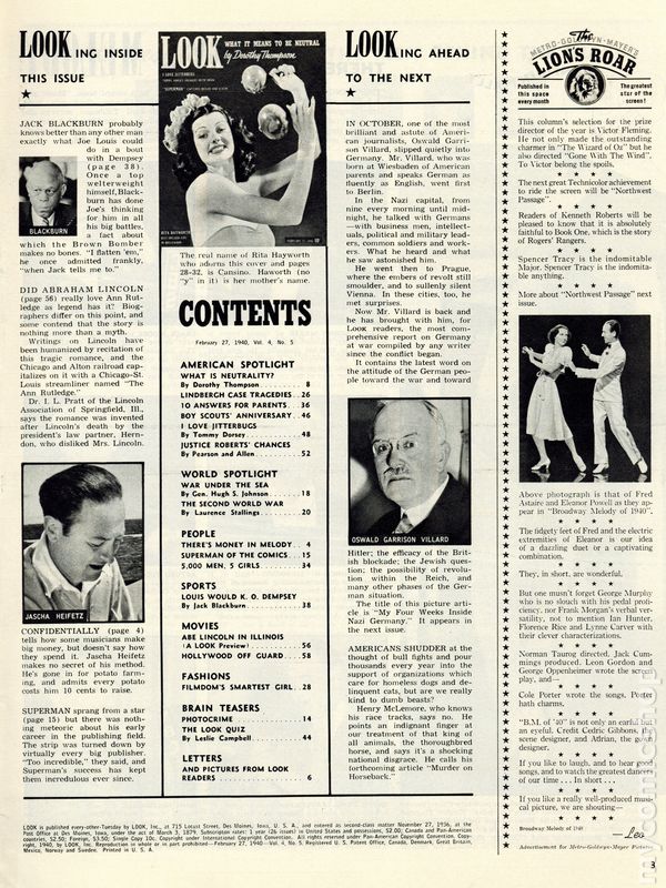 Look (1937-1971 Cowles Media) Magazine Vol. 4 #5Published Feb 1940 by Look, Inc./Cowles Magazines.