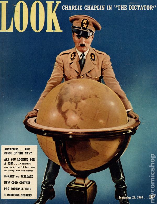 Vol. 4 #20, Sept. 24, 1940 - Charles Chaplin writes why he made "The Great Dictator" illustrated with eleven movie stills. Illustrated article on automobile ads from the 1920s. One page article on Lucille Ball with five photographs. Article on the new training and new weapons the US Army has. Article entitled "How Hitler Controls the World" runs four pages. Full page, full color ad for The Thief of Bagdad. 10.5" x 13.5", 68 Pages, B&W with some color ads. Cover price $0.10.