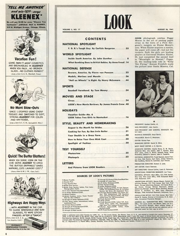 Look (1937-1971 Cowles Media) Magazine Vol. 5 #17Published Aug 1941 by Look, Inc./Cowles Magazines.