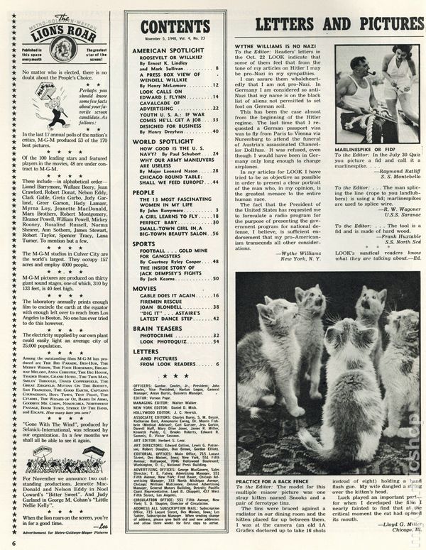 Look (1937-1971 Cowles Media) Magazine Vol. 4 #23Published Nov 1940 by Look, Inc./Cowles Magazines.