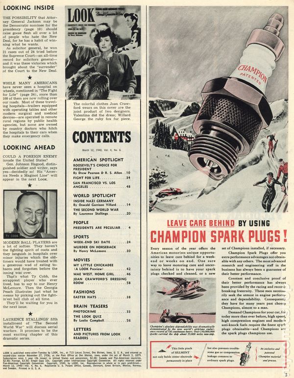 Look (1937-1971 Cowles Media) Magazine Vol. 4 #6Published Mar 1940 by Look, Inc./Cowles Magazines.
