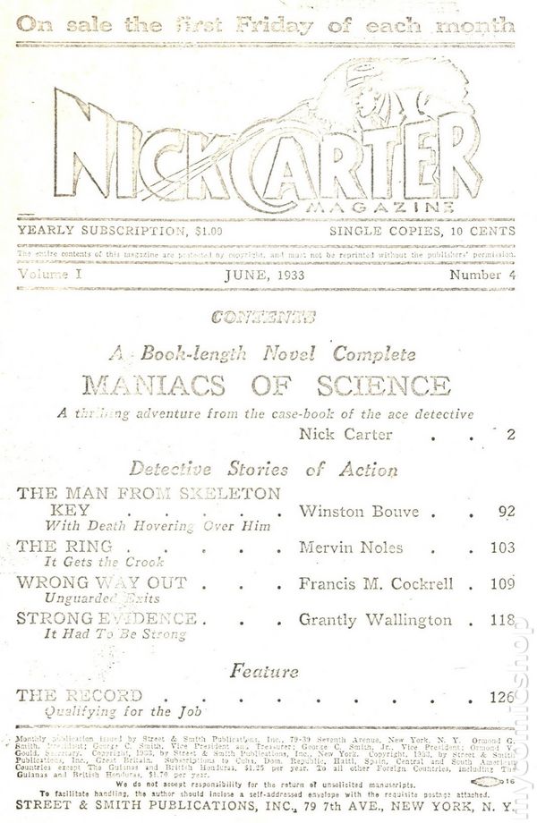 Nick Carter Magazine (1933-1935 Street & Smith) Pulp comic books 1955 or before