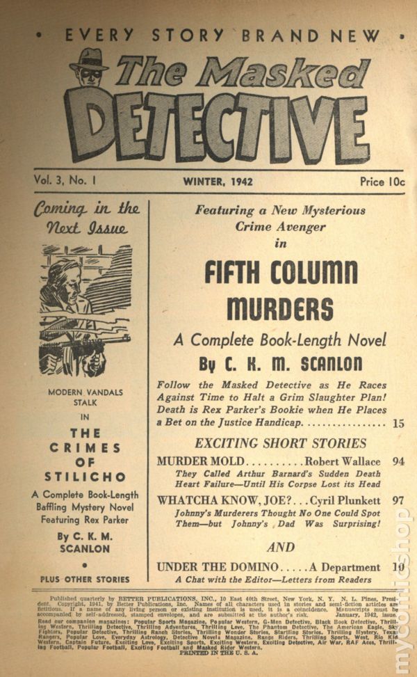 Masked Detective (1940-1943 Better Publications) Pulp comic books 1955 or before