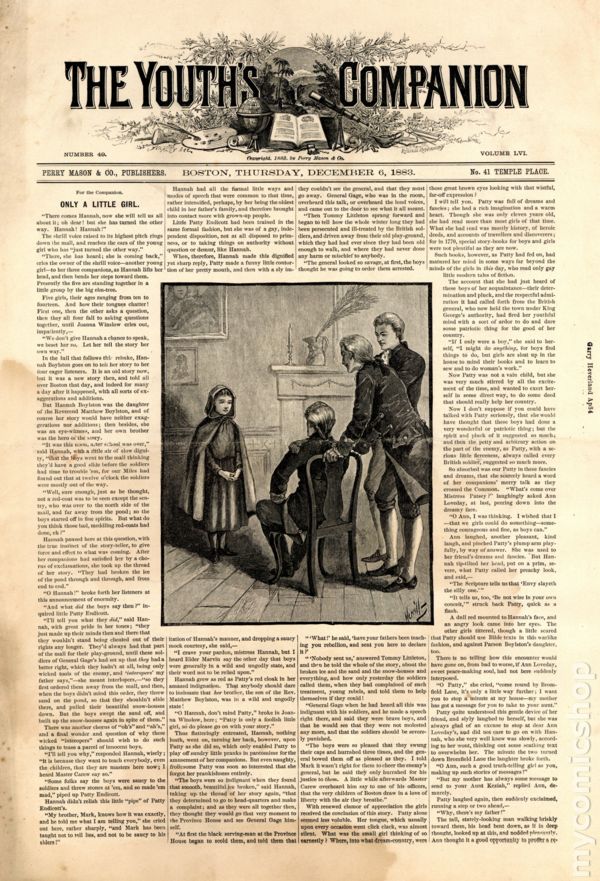 Volume 5, Issue 216 - December 18, 1884. "Christmas Number" - Featuring a short fiction story, "A Disappointed Christmas" by Lucy C. Lillie. 8.25" x 11.5". 16 pages. B&W Newsprint. Cover price $0.05.