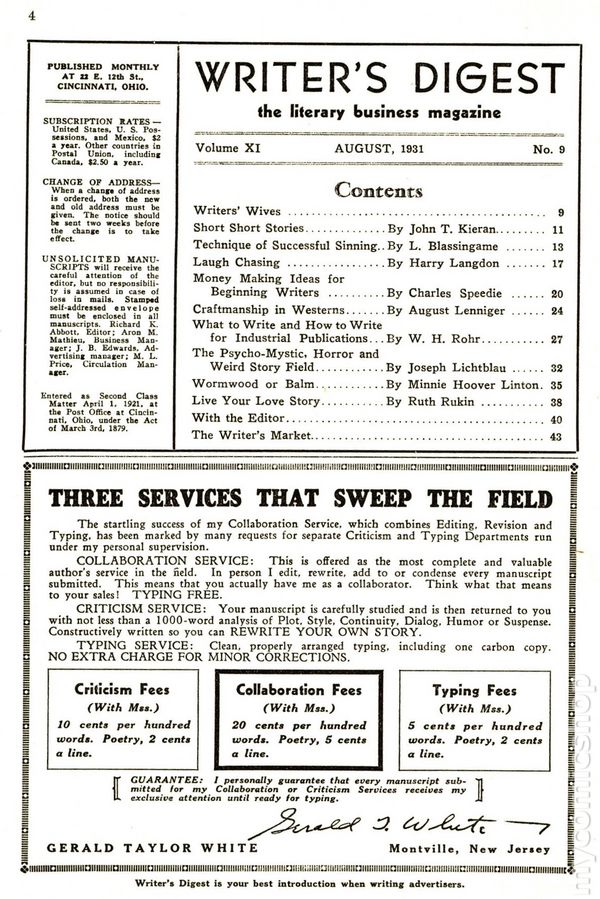 Published Aug 1931 by Curtis Publishing Co..$9.00