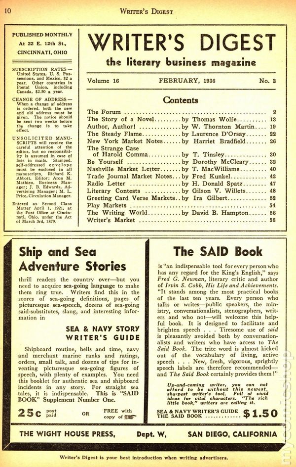 View scansVol. 16, No. 3 - February, 1936. 6.5" x 9.5", 64 pages, B&W. Cover price $0.20.