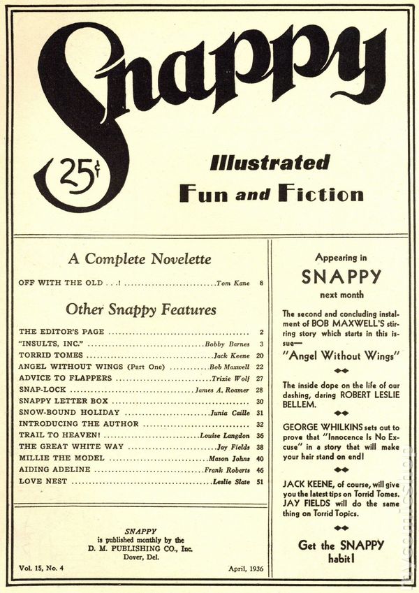 Volume 2, Issue 7 - April 1936. Painted cover by Enoch Bolles. Girls, Gags, Cartoons, and Stories. 8.5" x 11.5", 64 pages, B&W. -MATURE READERS- Cover price $0.20.
