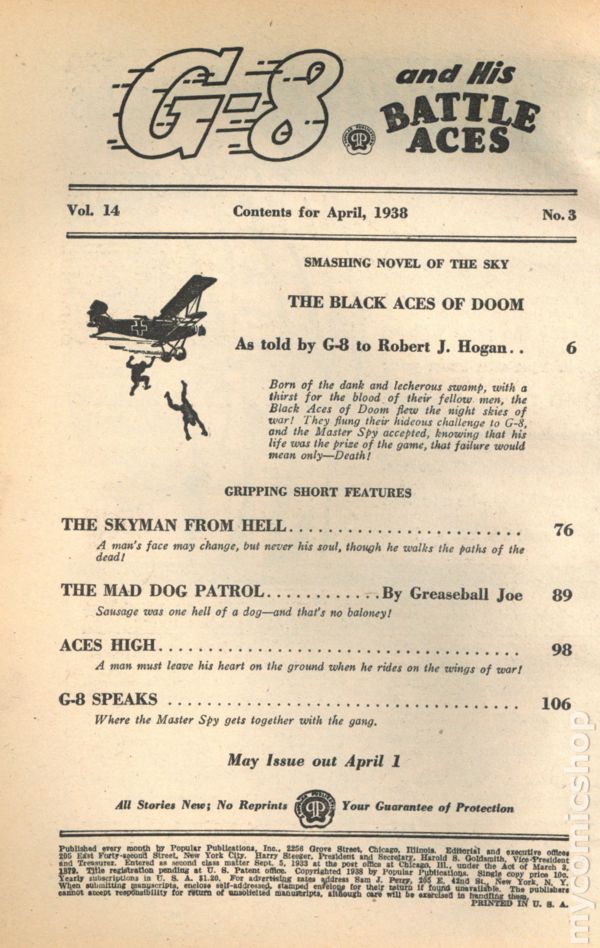 Published Apr 1938 by Ace Magazines.$3.00