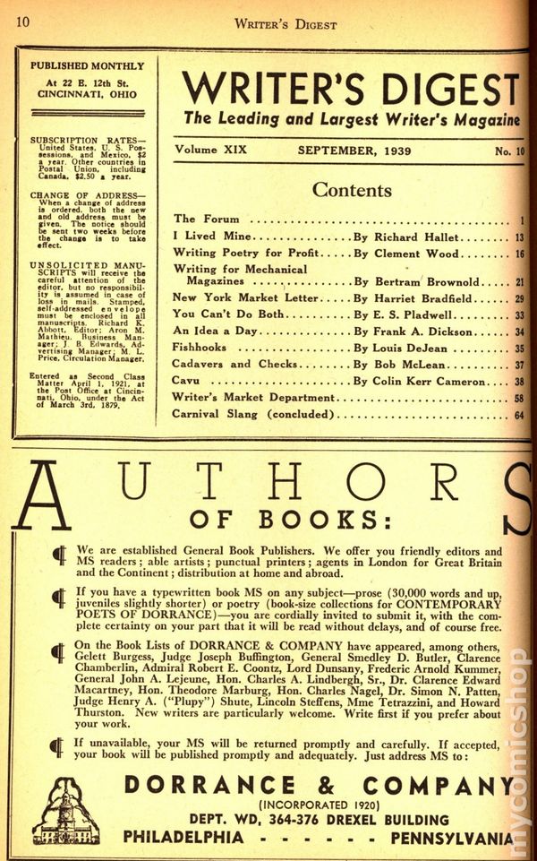 Writer's Digest (1921-Present F+W Publications) Vol. 19 #10Published Sep 1939 by F+W Publications.