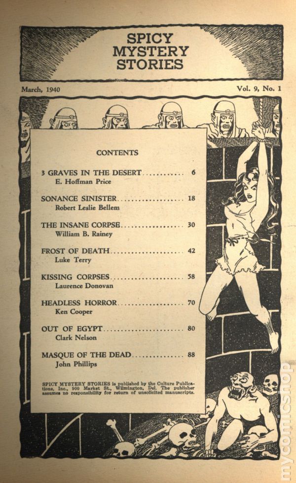Espionage Starring the Black 'X' story, script and art by Will Eisner. Abdul the Arab story, script and art by Vernon Henkel. Flash Fulton story, script and art by Paul Gustavson. Clip Chance at Cliffside story, script and art by George Brenner [as Scot Sheridan]. Wings Wendall story, script and art by Vernon Henkel. Case of the Roving Taxicab starring Captain Cook of Scotland Yard, art by Stanley Aschmeier. The Phantom Fog starring John Law, Scientective, script and art by Harry Francis Campbell. Chic Carter story, script and art by Vernon Henkel. Invisible Justice story, script and art by Art Pinajian [as Art Gordon]. War starring Hugh Hazard and His Iron Man, script and art by George Brenner [as Wayne Reid]. 68 pgs. $0.10. Cover price $0.10.