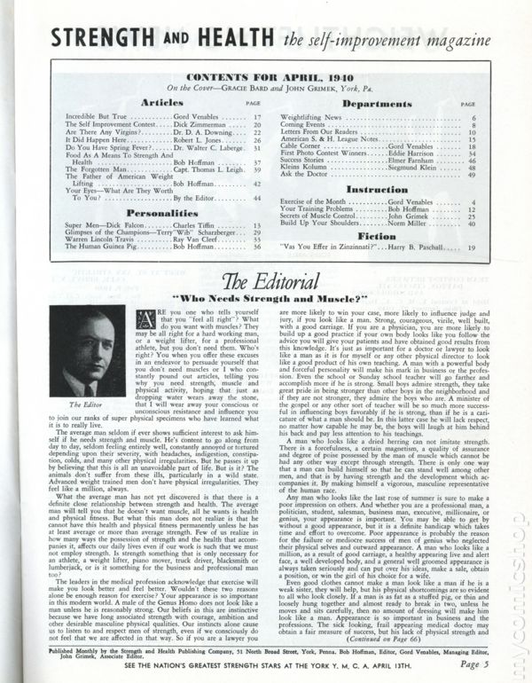 Strength & Health was one of the earliest magazines devoted to fitness and bodybuilding. Through the early 1960s, it was the most popular weightlifting magazine in the United States. Cover price $0.15.