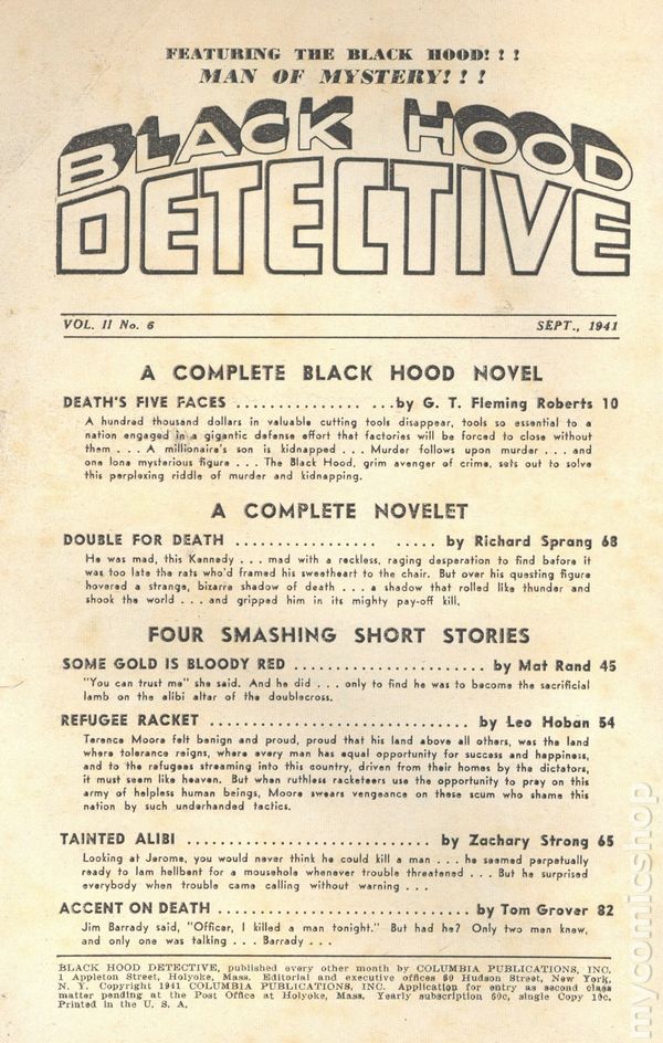 NOTE: For previous issues see Detective Yarns (1938-1941 Columbia Publications). Title continues as Hooded Detective (1941-1942 Columbia Publications) with Vol.3#1
