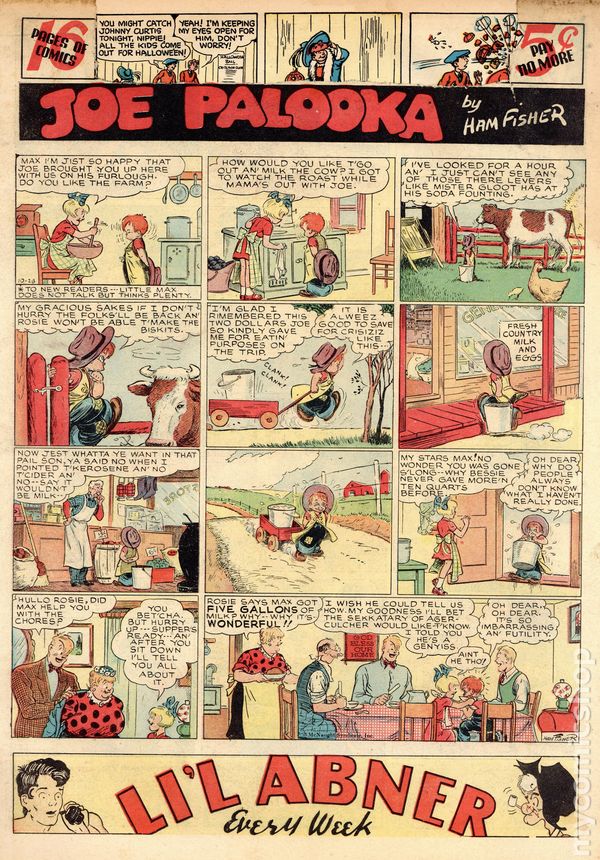 Sunday Mirror Newspaper Comic Insert dated October 26, 1941. This issue contains Joe Palooka, Black Fury (soon to be retitled "Miss Fury") by Tarpe Mills, Superman (in costume), Captain Easy, Barney Baxter, Li'l Abner, Dixie Dugan and other comic strips. 11.5 x 14.5 inches, 16 pages, full color, all newsprint. Cover price $0.05.
