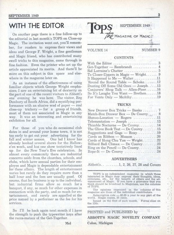 Tops (1936-1957 Abbott Magic & Novelty Co.) Vol. 14 #9Published 1949 (est.) by Abbott Magic & Novelty Co..