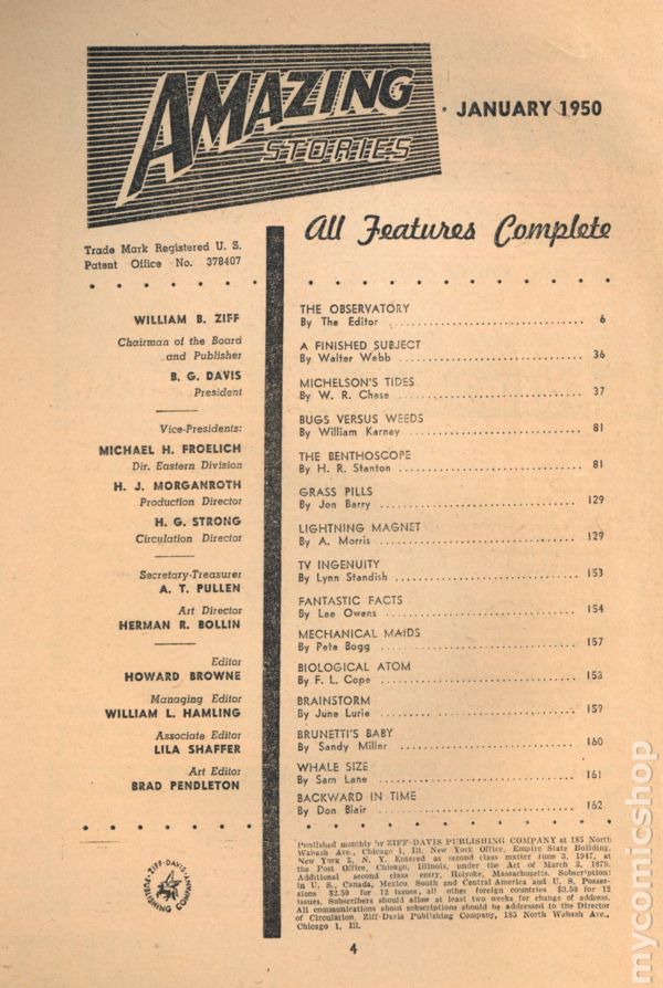 Published Jan 1950 by Standard Magazines Inc..