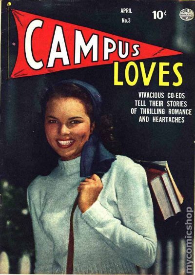 April 1950 issue. Photo Cover of Anne Kelly by Carlyle Blackwell, Jr. Stories by Paul Gustavson and unknown. Art by Paul Gustavson and unknown. Vivacious co-eds tell their stories of thrilling romance and heartaches! In this issue: "Highest Bidder" by Paul Gustavson; "My Undenied Love"; "Love Lesson"; 1-page text story "Beauty and the Brain"; and "I Made Him Hate Me"! 7-in. x 10-in., 32 pages, full color. Cover price $0.10.
