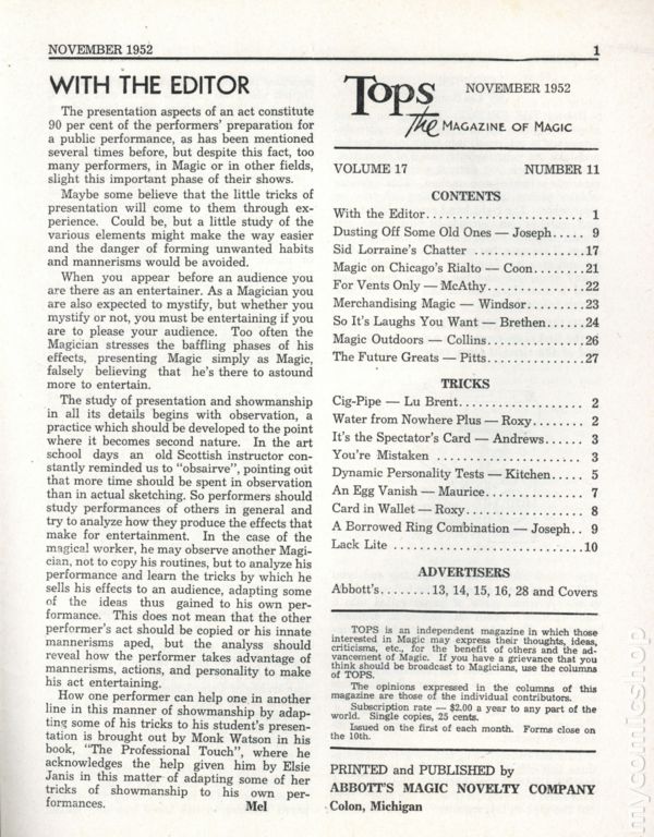 Tops (1936-1957 Abbott Magic & Novelty Co.) Vol. 17 #11