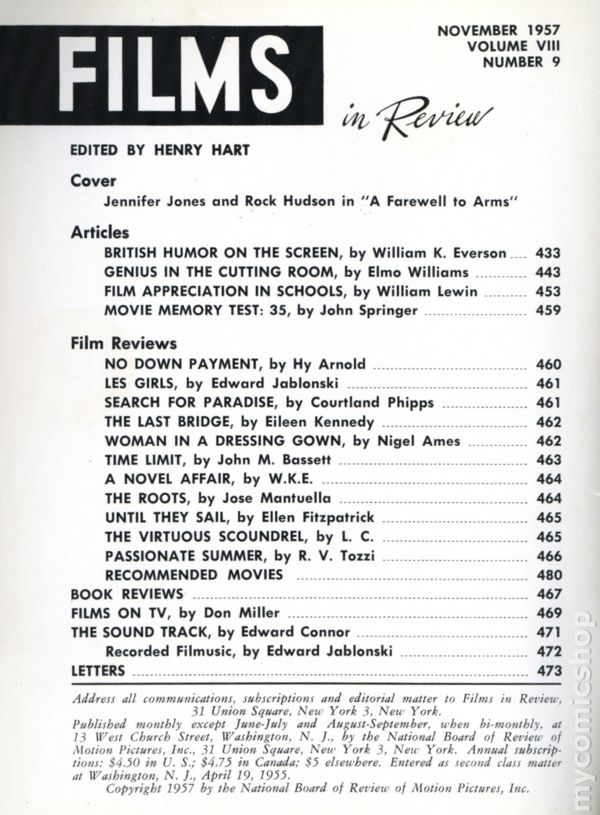 Published Nov 1957 by National Board of Review of Motion Pictures Inc..$19.00