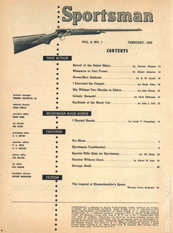 Sportsman (1953-1968 Male Publishing) Vol. 6 #1Published Feb 1958 by Male Publishing Corp..$21.00