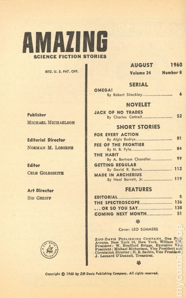 Vol. 34, No. 8 - August , 1960. 5.5" x 7.5", 146 pages, B&W. Cover price $0.35.