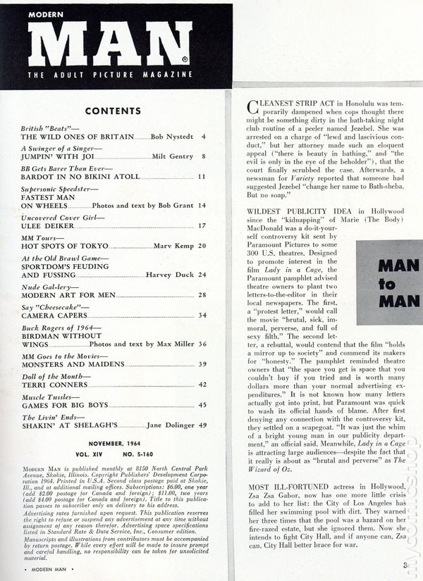 Modern Man (1951-1976 PDC) Magazine Vol. 14 #5Published Nov 1964 by Publisher's Development Corporation.$42.00