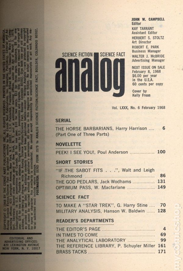 Vol. 80, No. 6 - February , 1968. 5.5" x 7.5", 178 pages, B&W. Cover price $0.60.