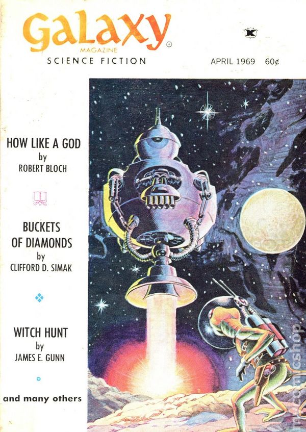 April 1969. Cover by Reese. Science fiction stories by James E. Gunn, Robert Bloch, Clifford D. Simak, Keith Laumer, James Tiptree Jr, Sylvia Jacobs. Illustrations by Dan Adkins, Reese, Barr, Gaughan. Softcover Pulp Digest, 5-in. x 7-in.;194 Pages, B&W. Cover price $0.60.
