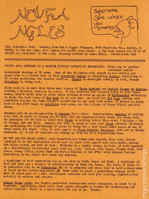 News zine published by Don and Maggie Thompson. 4 pages. Circulation 218. Cover price $0.10.
