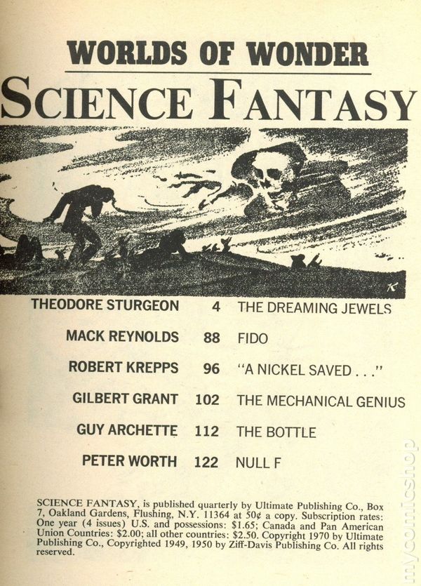 Issue #2 - Fall 1970. Reprints from Amazing Stories and Fantastic Adventures. "The Dreaming Jewels" by Theodore Sturgeon, "Fido" by Mack Reynolds and more. 5 1/4-in. x 7 1/2-in., 130 pages, black and white. Cover price $0.50.