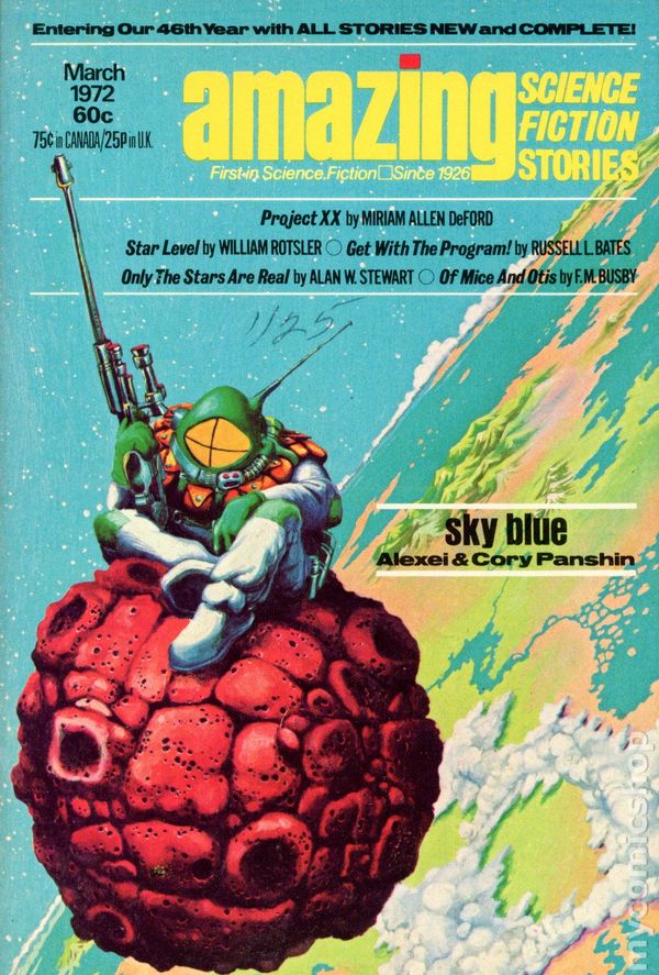 March 1972. Cover by John Schoenherr. Stories: "The Gold at the Starbow's End" by Frederik Pohl, "Cloak of Anarchy" by Larry Niven, "Child of the Gods" by James Schmitz, "War in Our Time" by Howard L. Myers, "The Long Silence" by Donald Noakes, and "BCL 362" by Vernon Glasser. Science Fact article: "Skylab" (part 1 of 2) by Joseph Green. Illustrations by John Schoenherr, Vincent DiFate, Jack Gaughan, Leo Summers, and Kelly Freas. Softcover, 5.5-in. x 7.5-in.; 178 newsprint pages, B&W. Cover price $0.60.