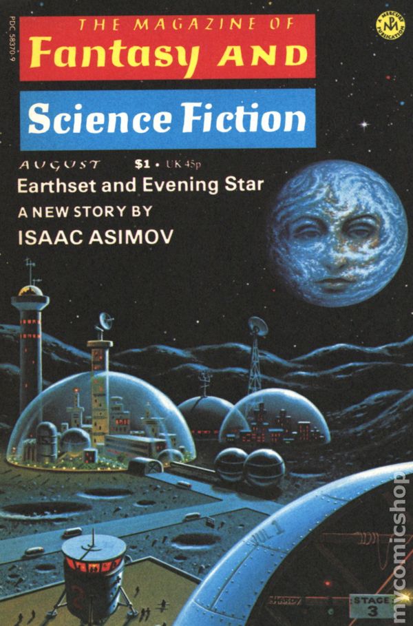 Volume 49, Issue 2 - August 1975. Cover by David Hardy. Fantasy and science fiction stories by Tom Reamy, Avram Davidson, Charles Runyon, Henry Slesar, Isaac Asimov, Robert F. Young, Larry Eisenberg, and Ron Goulart. 5 1/2-in. x 7 1/2-in., 162 pages, B&W Cover price $1.00.