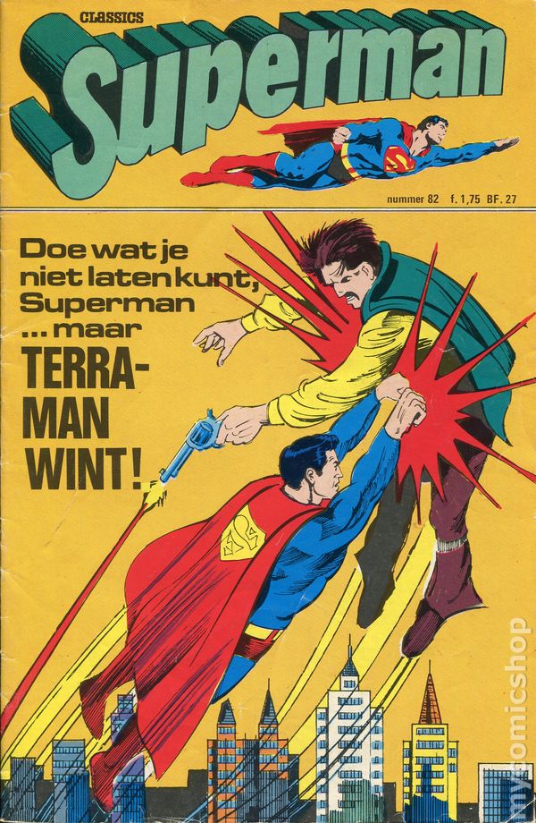 Netherlands Reprint Series. Reprints stories from Superman #298 and DC Super Stars #17. Stories by Cary Bates, Denny O'Neil, and Elliot S. Maggin. Art by Mike Grell, Bruce Patterson, Bob Oksner, and Curt Swan. 7" X 10 1/4". 36 pages. Full color. Dutch Language.