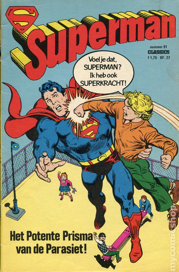 Netherlands Reprint Series. Reprints stories from Superman #283, Action Comics #470, and #471. Stories by Cary Bates, Bill Kunkel, and Elliot S. Maggin. Art by Tex Blaidell, John Calnan, Bob Oksner, and Curt Swan. 7" X 10 1/4". 36 pages. Full color. Dutch Language.