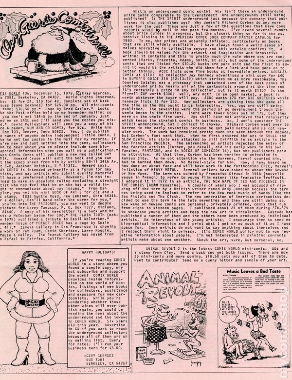 Trina Robbins cover. Published and edited by Robert Weiner of Archival Press. Bruce Sweeney on undergrounds and he reviews some miscellaneous posters and books. Many ads for Archival Press publications. 5 1/2-in. x 8 1/2-in. 34 pages, B&W.