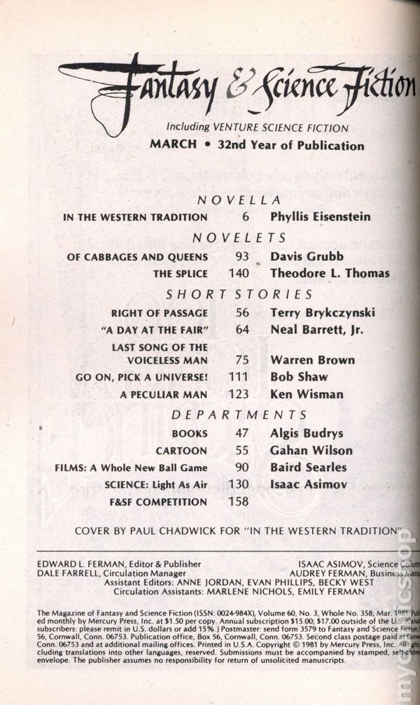 Vol. 60, No. 3 - March , 1981. 5.5" x 7.5", 160 pages, B&W. Cover price $1.50.