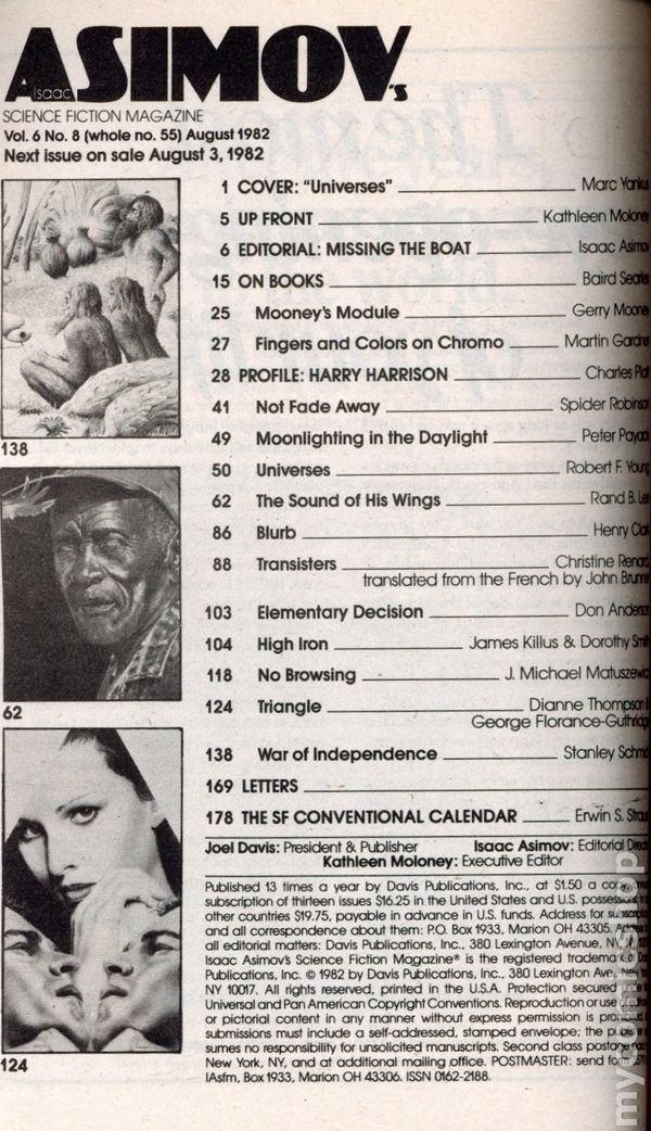 Vol. 6, No. 8 - August , 1982. 5.25" x 7.5", 178 pages, B&W. Cover price $1.50.