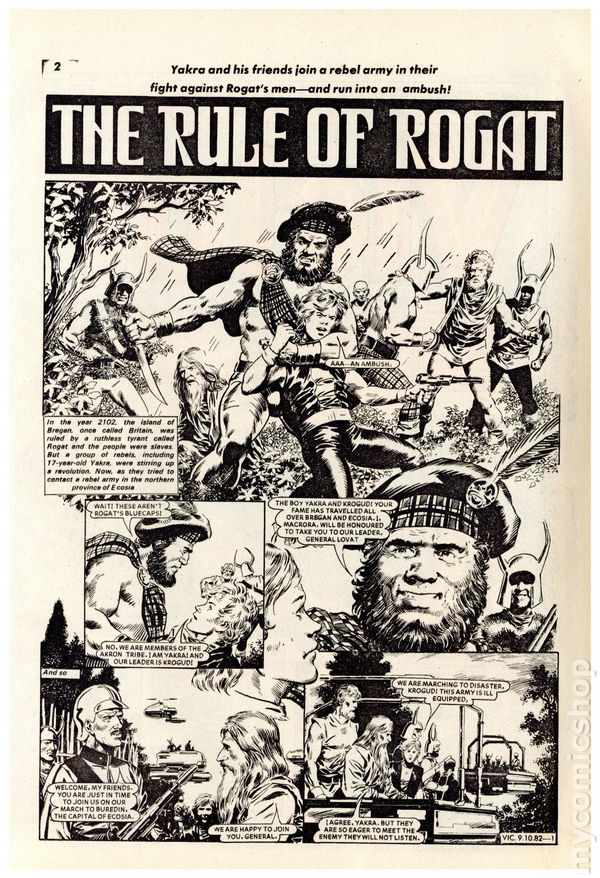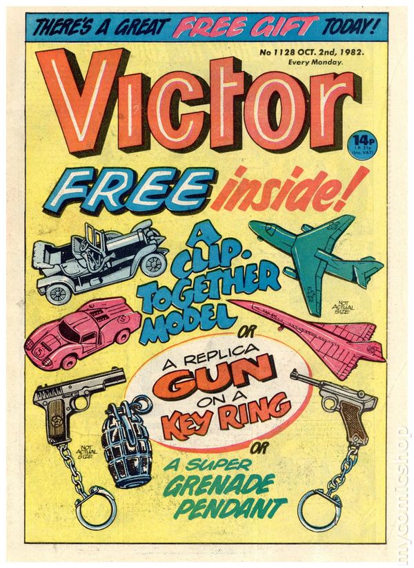 October 23, 1982. Published by D.C. Thompson and Co. Ltd. in Great Britain. Action/adventure stories feature the Quest of the Last Six Hundred, Johnny Gurkha, the Punch Pirate, Morgyn the Mighty, Legion of the Lost, Duke Farlow, Taneebo the Thunderbolt, and more. 8.5 x 11.75; black and white; 32 pages; 14p cover price.