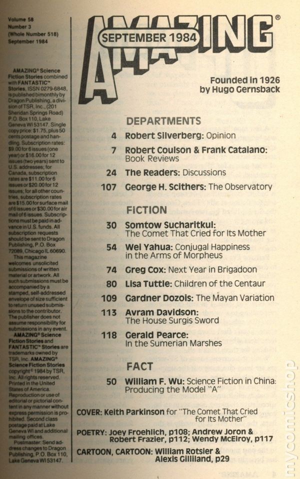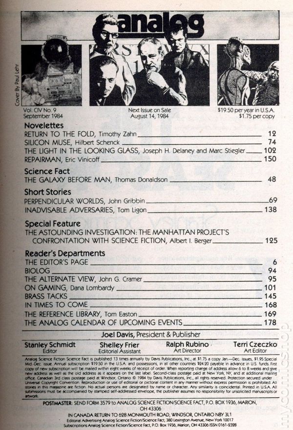 Vol. 58, No. 3 - September , 1984. 5.25" x 7.25", 162 pages, B&W. Cover price $1.75.