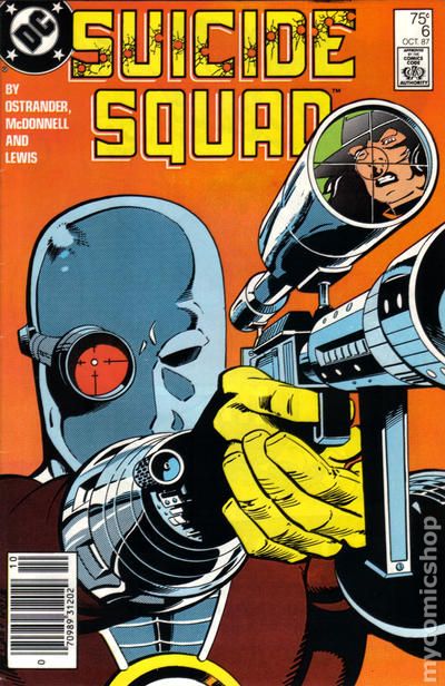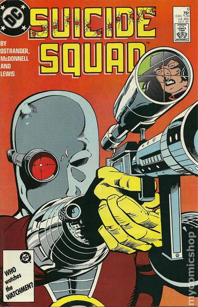 Canadian edition with $1.00 cover price. Deadshot cover and appearance. Cover pencils by Luke McDonnell, inks by Bob Lewis. Hitting the Fan, script by John Ostrander, pencils by Luke McDonnell, inks by Bob Lewis; Okay, so the team is in Russia and now they know their subject does not want to be rescued; What could possibly complicate things more?; Well, for starters, how about Enchantress going bonkers or the entire Russian army being mobilized against them?; It's a wild ride across the vastness of Russia as the team seeks asylum. 36 pgs. Cover price $1.00.