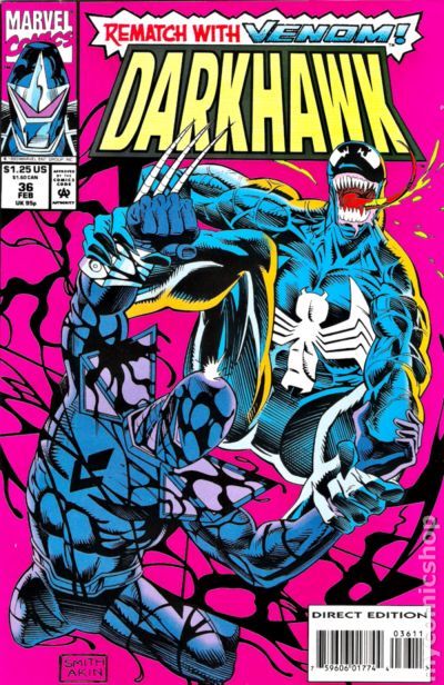 Direct Edition. Cover pencils by Tod Smith, inks by Ian Akin. Operation: Symbiote Part Two: Seek & Hide starring Darkhawk, Venom, the Seekers, Mike Powell, Philippe Bazin, St. Johnny, Ned, Jon, and Jason, script by Danny Fingeroth, pencils by Tod Smith, inks by Ian Akin; Darkhawk and Venom battle the Seekers. 36 pgs. $1.25. Cover price $1.25.