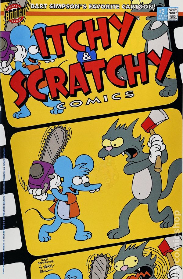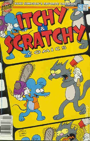 Newsstand Edition. Cover pencils by Steve Vance, inks by Bill Morrison. "The Itchy & Scratchy Movie II," script by Dan Castellaneta and Deb Lacusta, pencils by Steve Vance and Bill Morrison, inks by Tim Bavington; The making and premier screening of an Itchy & Scratchy movie. Based on the Simpsons characters. 36 pgs., full color. $2.25. Cover price $1.95.