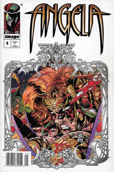 Newsstand Edition. Cover art by Greg Capullo. Untitled Angela story, script by Neil Gaiman, art by Greg Capullo; Angela is charged with Treason for failing to kill Spawn. Angela pinup, art by Sean Parsons and Brad Gorby. 36 pgs. $2.25. Cover price $2.25.